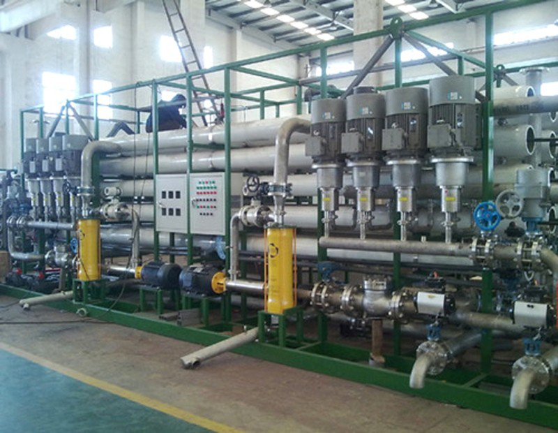 ( 紧为1 0 A左右) , 因此能够有效的去除水中的溶解盐类、胶体、微生物等( 去除率高达9 7 % - 9 8 %) 。海水淡化设备系统反渗透是目前高纯水设备中应用最广泛的一种脱盐技术, 它的分离对象是溶液中的离子范围和分子量几百的有机物; 反渗透(RO)、超过滤(UF)、